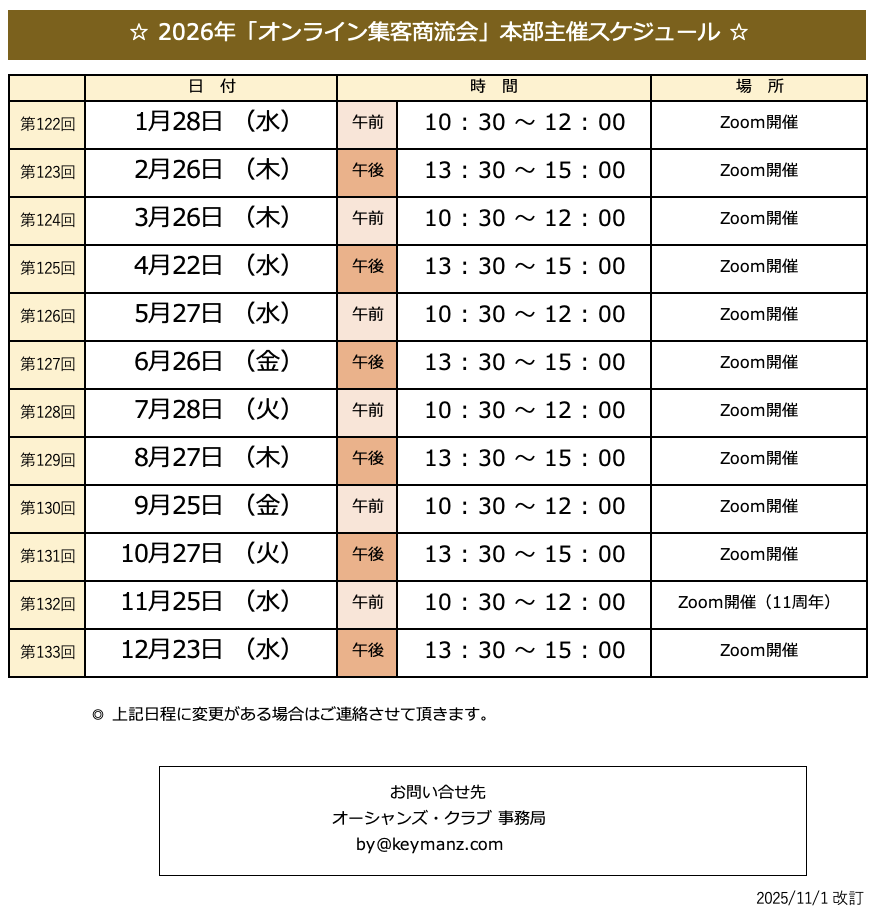 2026年 集客商流会 年間スケジュール